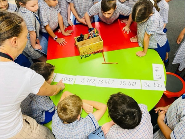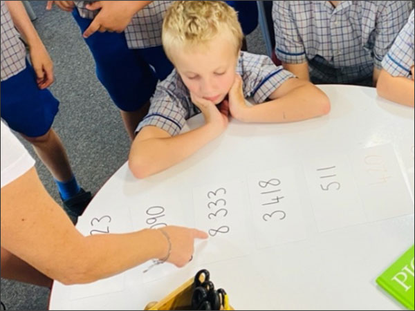Year Three, students collaborated to order numbers for place value by working in small groups.