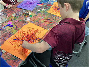 Painting with Wool: Year 1 students explored the world of abstract art with a fun project inspired by Jackson Pollock. Using wool dipped in paint, they created created incredible displays of patterns on coloured paper, which will soon transform into collage guitars.